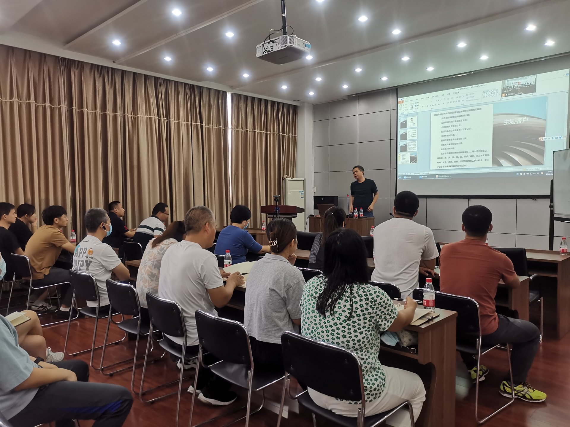 培訓(xùn)前物資質(zhì)量部部長曹國巍介紹了齊永合老師的工作履歷,以及大陸航星在企業(yè)管理模式設(shè)計(jì)、人力資源體系中薪酬和績效、營銷、生產(chǎn)管理、資本經(jīng)營等領(lǐng)域的成功培訓(xùn)經(jīng)驗(yàn)。
