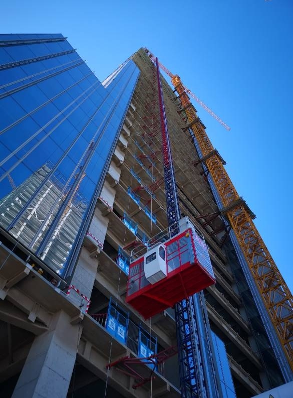 廊坊凱博建設(shè)機械科技有限公司設(shè)計研發(fā)的單軌雙籠高速施工升降機(額定運行速度最高可達100m/min),主要用于超高層建筑主體施工工程。通過對施工升降機高效運行、安全運行、平穩(wěn)運行技術(shù)研究及其產(chǎn)業(yè)化制造工藝技術(shù)研究,大大提升了設(shè)備性能,運輸效率顯著提升,安全保護更加完善可靠,運行過程更加平穩(wěn)舒適,有力的保障了施工人員高空作業(yè)安全,減少施工風(fēng)險,提升我國超高層建筑垂直運輸設(shè)備的國際市場競爭力。