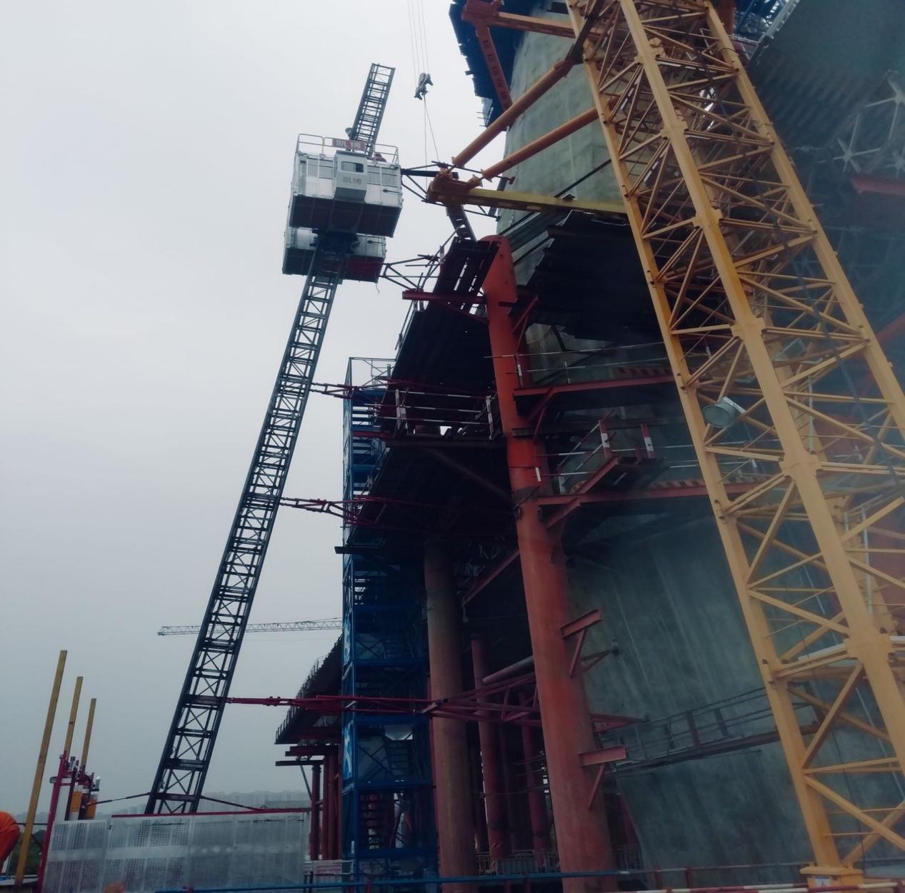 近日,廊坊凱博建設(shè)機械科技有限公司生產(chǎn)的斜、直線兩用施工升降機順利投入到廣東佛山“三水三橋”項目。此類型升降機承重架和吊籠經(jīng)過特殊設(shè)計,角度變化范圍為0~15°,在不增加任何部件的情況下,通過簡單操作即可實現(xiàn)斜、直線轉(zhuǎn)換。斜線運行時,吊籠始終保持水平,角度為0時,該機可做為普通直線升降機使用,吊籠尺寸和提升速度可根據(jù)用戶要求定制。該設(shè)備廣泛應(yīng)用于煙囪、橋梁等建筑工程。