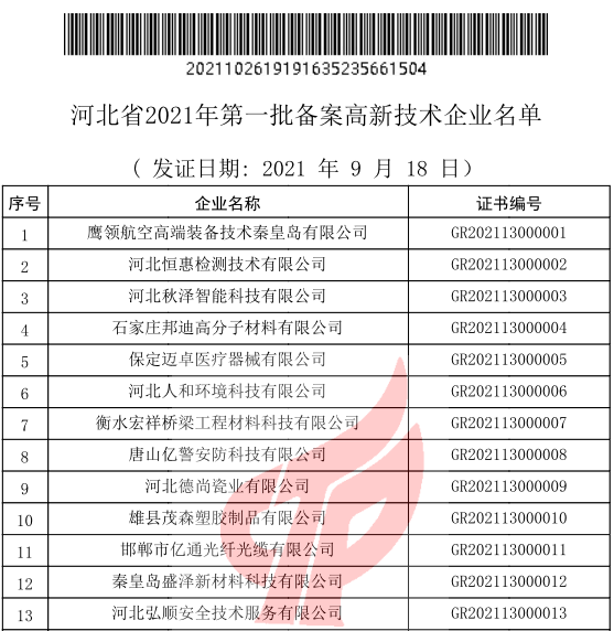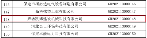 2021年10月27日,科技部火炬中心公示了《河北省 2021 年第一批備案高新技術(shù)企業(yè)名單》,廊坊凱博建設(shè)機械科技有限公司順利通過河北省高新技術(shù)企業(yè)認(rèn)定。高新技術(shù)企業(yè)的取得,將進(jìn)一步推動公司自主創(chuàng)新、自主研發(fā)的進(jìn)程,從而快速推動公司產(chǎn)業(yè)化經(jīng)營。同時,公司將充分發(fā)揮高新技術(shù)企業(yè)的引領(lǐng)作用,積極創(chuàng)新、突破自我,為公司高質(zhì)量可持續(xù)發(fā)展提供科技支撐。